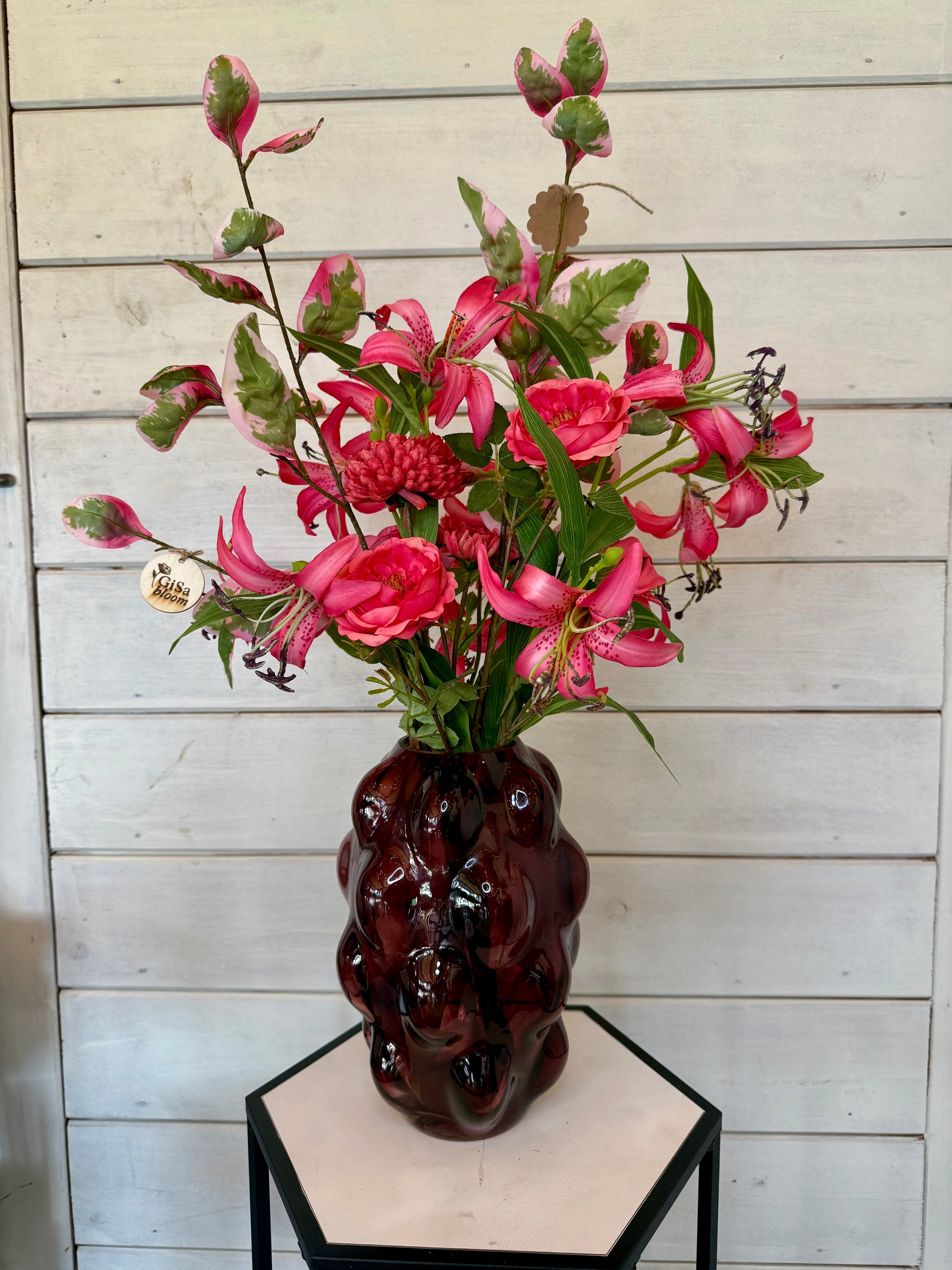 Boeket Roset staat in vaas Suzy en is 26cm hoog.