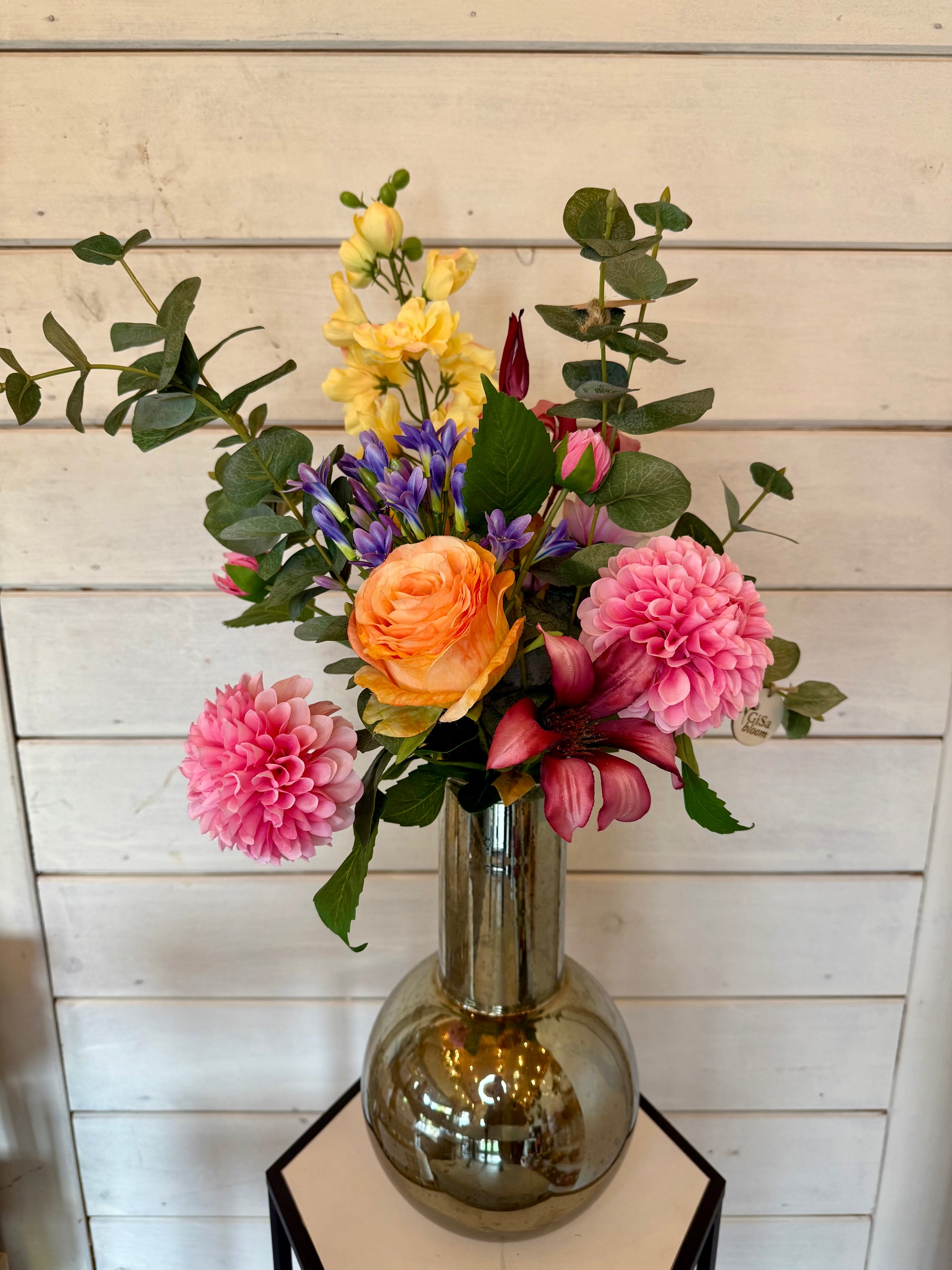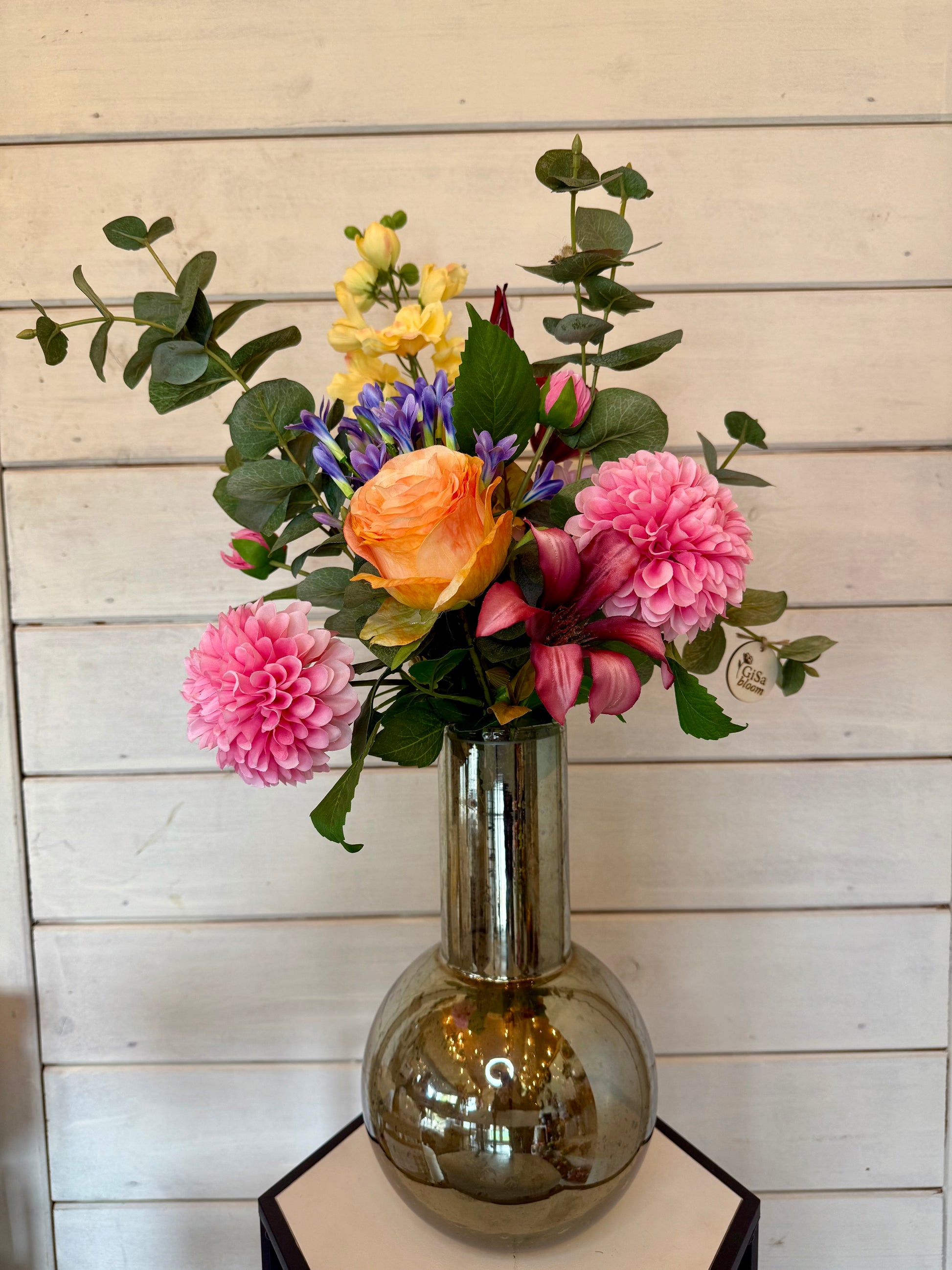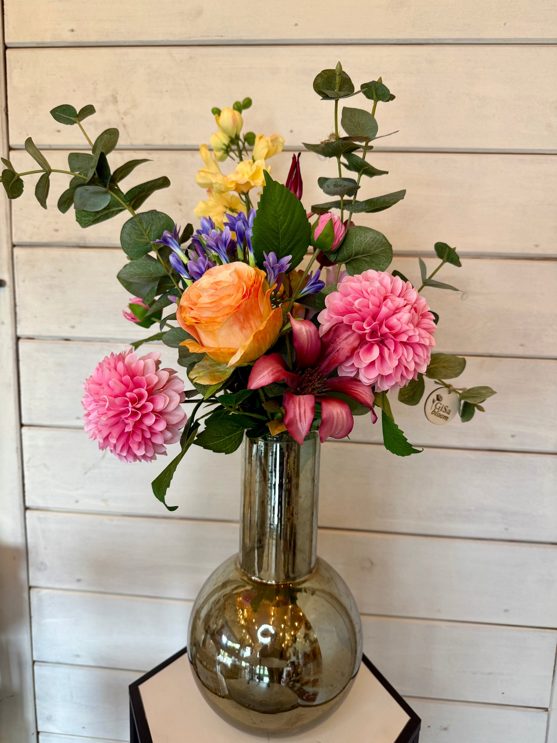 Boeket staat in vaas Gisa en is 30cm hoog.